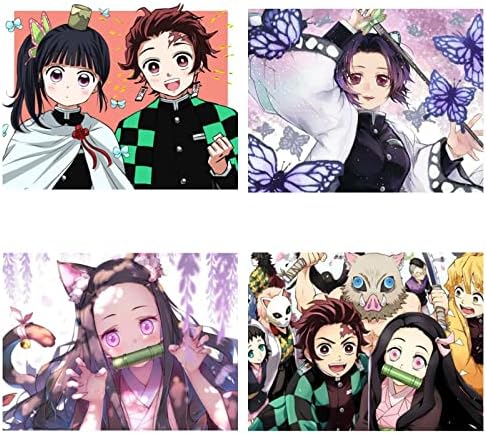 5Dダイヤモンドキットアートピース4個DIYダイヤモンドキットダイヤモンドペインティングセットクロスステッチ刺繡キットクリスタルラインストーンフルスティッキングタイプ手工芸品(アニメキャラクター)
