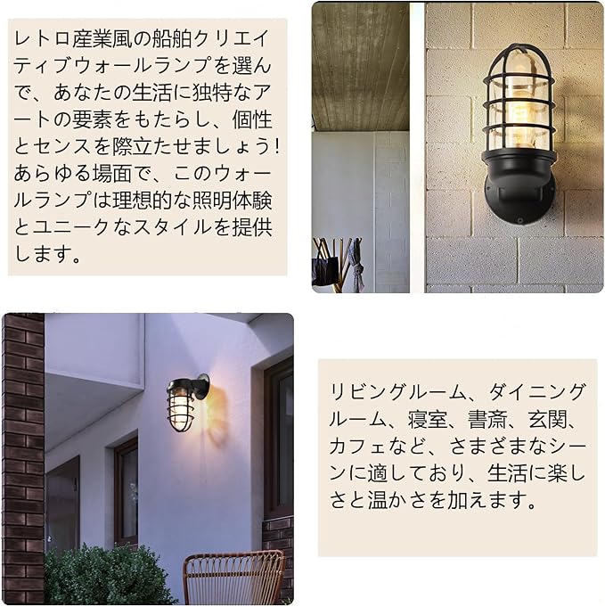 ユニークなダイキャストアルミ防水壁ライト: スムーズととげなし、光沢が良好である、と色は色あせていない。耐久性。レトロなデザイン、厚い産業風味、質感とユニークな特性あなたの人格のため。船舶の灯り ,厚いガラスのグローブに、 鉄製 のカバーが付いたランプ。 過酷な環境に耐えるよう設計された頑丈なつくりの船舶照明です。 存在感がありながらも、主張しすぎないすっきり.