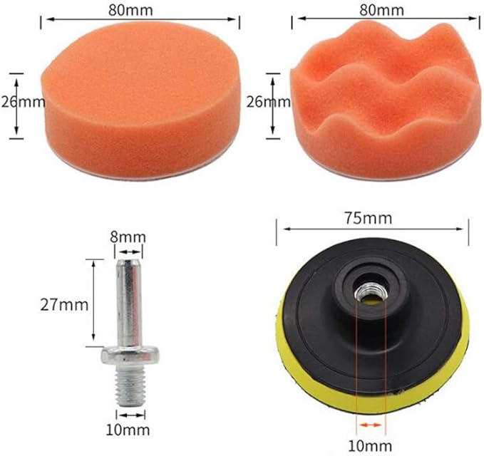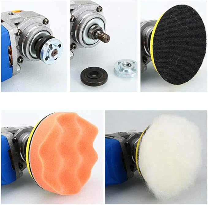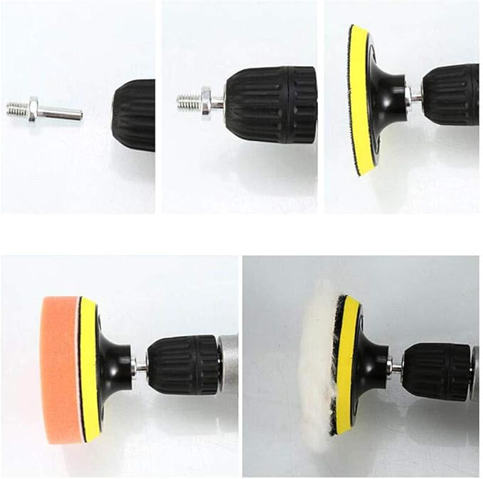 セット内容:4 スポンジ研磨パッド 1 羊毛研磨パッド 1 スレッドドリルアダプタ 1 バッキングパッド