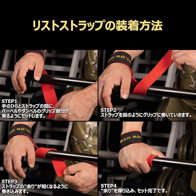 ゴールドジム(GOLD'S GYM) 耐久性 元祖リストストラップ 初心者~上級者 鍛えたい部位に集中 握力補助 背中 懸垂 ラットプルダウン デッドリフト ローイング G3500