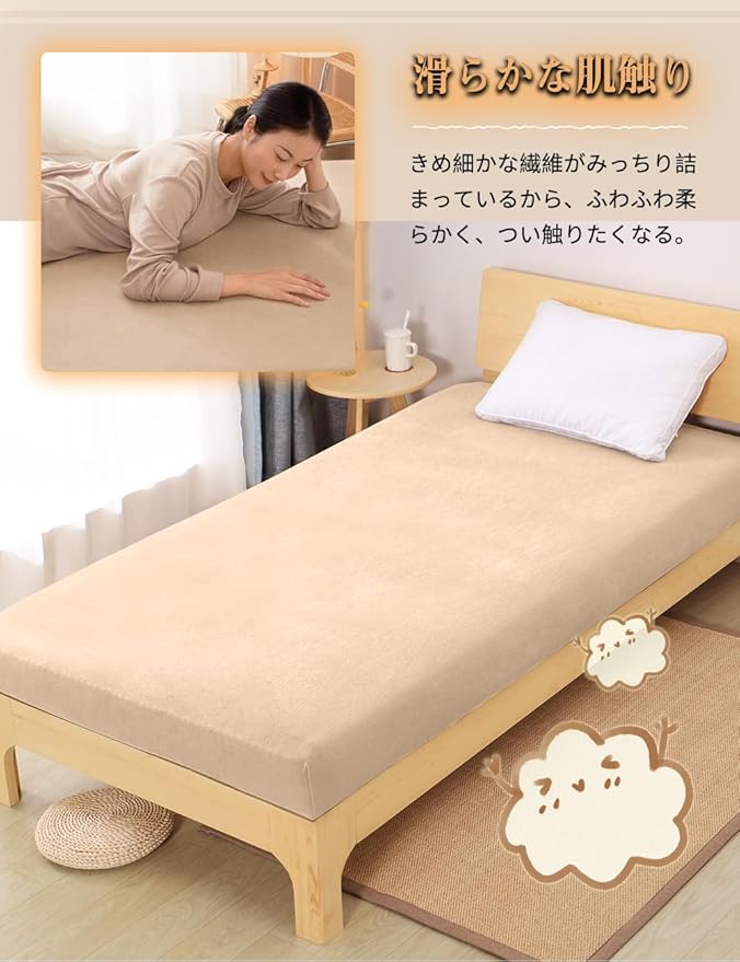 EMME ボックスシーツ ベッドシーツ 秋 冬 寒さ対策 マイクロファイバー マットレスカバー 抗菌防臭・防ダニ 静電気防止 毛玉なし 着脱簡単 暖かい ベッドカバー シングル 100x200cm ラクダ色