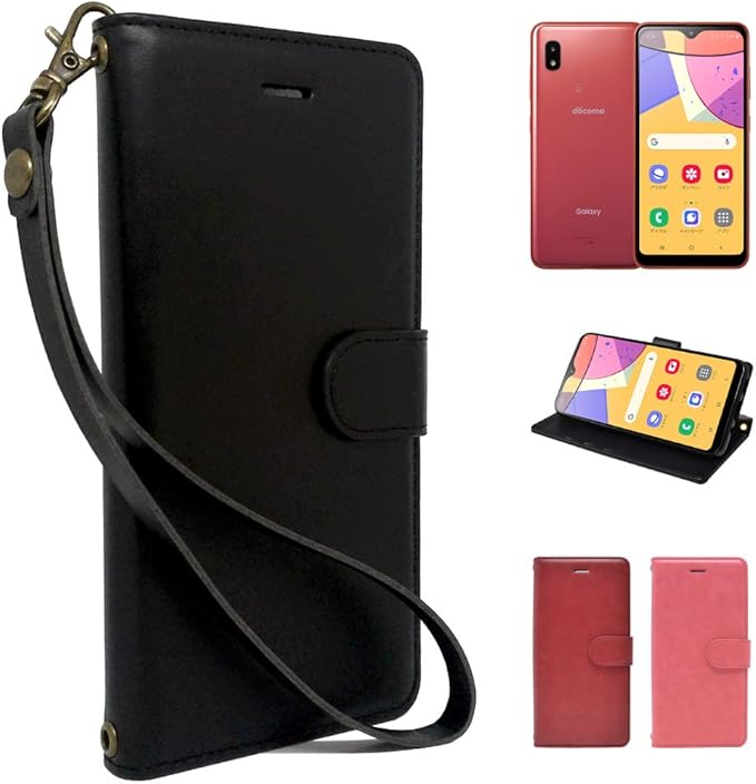 シズカウィル Galaxy A21 docomo SC-42A au SCV49 ケース カバー 手帳型 シンプル ブラック 黒色