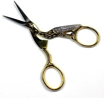 ドイツで製造されたコウノトリ形手芸ハサミです。本体は金色と銀色にメッキされ、高級感が溢れています。また口ばしの形をした刃は精巧に研ぎ澄まされその切れ味はまさにドイツ製の名に恥じない素晴らしいものです。手芸用途以外にも色々と使用できプレゼントにも最適です。
