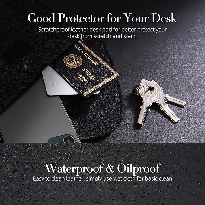 【高品質レザーデザイン】:丈夫なPUレザーでできており、かすり傷、染み、水滴、熱、擦り傷からデスクを保護します。デスクに敷けば、オフィスにモダンでプロフェッショナルな雰囲気をプラスできます。滑らかな表面により、執筆、タイピング、ブラウジングが楽しくできます。