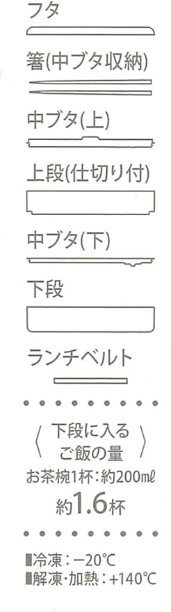 素材・材質:フタ=メラミン樹脂 本体・中フタ・仕切り=ポリプロピレン パッキン・エアー弁=シリコーン 箸=AS樹脂