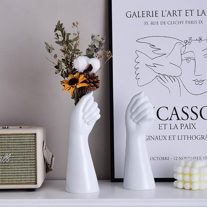 【おしゃれなデザイン】:精巧な花瓶は、女性の手の形に合わせてデザインされています。白い腕と細い指で、花を持っている女の子のようです。シンプルでエレガントな白いセラミックと手の形のデザインは、あなたの家を新鮮で芸術的な雰囲気を作ります。