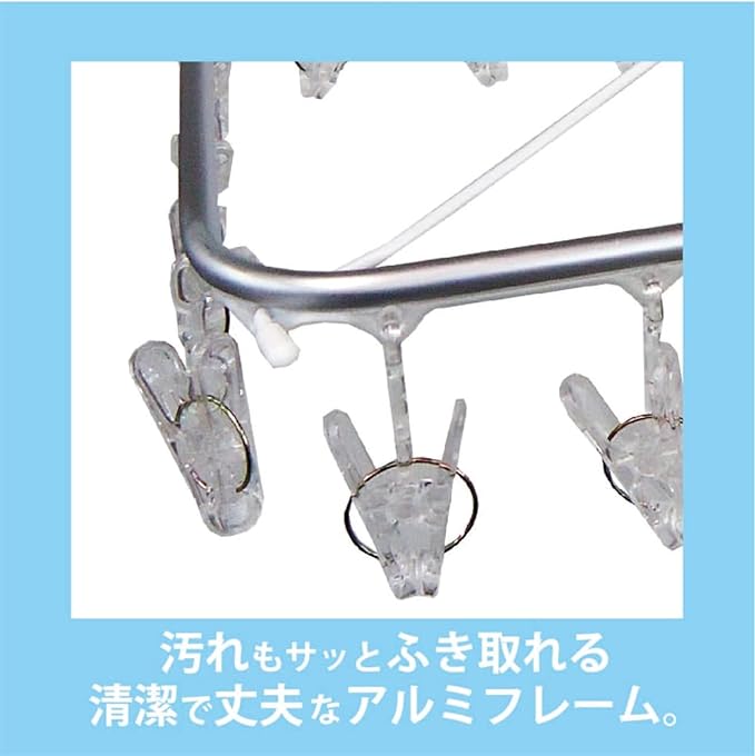 劣化しづらく割れにくい! 強化プラスチック製の洗濯バサミがついたアルミの角ハンガー
