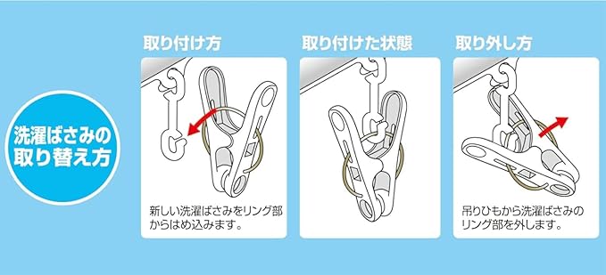 ピンチ先端が丸型形状なので、衣類にやさしく、手軽にはさめる