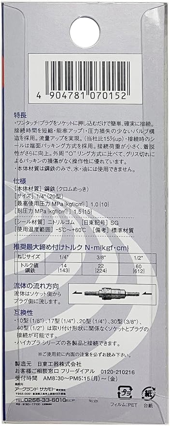 日東工器 ハイカプラ 200 200-20SM 全長:60mm
