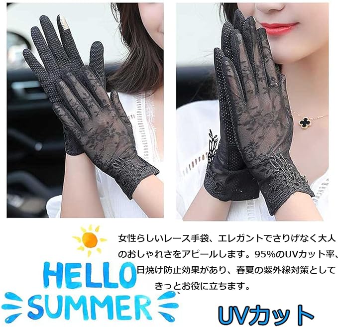 [FakeFace] レディース UVカット 手袋 夏 スマホ対応 グローブ 女性 薄手 レース手袋 エレガント 日焼け防止 紫外線対策 滑り止め付き 自転車 運転手袋 メッシュ素材 通気 UVグローブ 通勤 結婚式 パーティー 撮影道具 | ryouhinshop