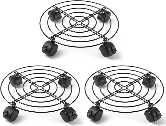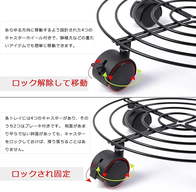 植木鉢台 鉢置台 鉢受プレート キャスター付き ストッパー機能付 花台 金属製鉢置台 移動 掃除楽に 屋内 屋外兼用 直径27cm ブラック 3個 (ブレーキ付)