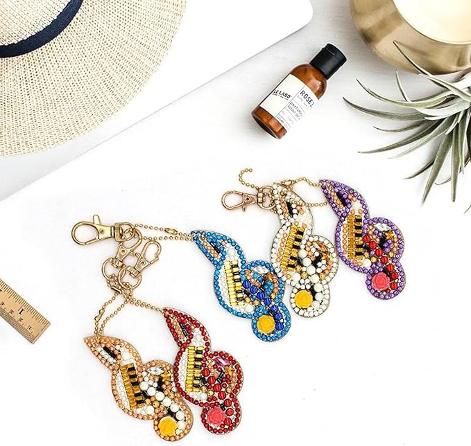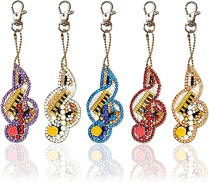 【初心者でもできる】この次元は初心者に適しており、迅速に完了することができます。5Dダイヤモンド塗装キーホルダー、両面にダイヤモンド装飾があり。ダイヤモンド塗装のキーチェーン 5 個セット、音符の形。