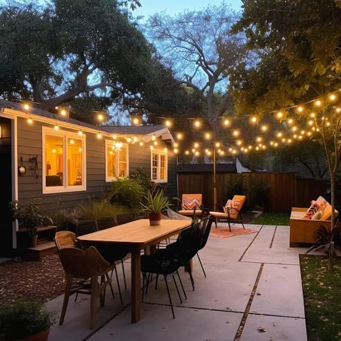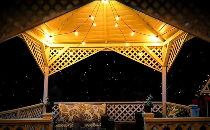 防雨型LEDストリングライト 15M 15個LED電球付き(予備電球2個) 2700K電球色 PC素材 破損しにくい 連結可能 LEDイルミネーションライト屋内/屋外照明 ガーデンライト クリスマス イルミネーション 装飾ライト誕生日パーティー電飾 結婚式飾り