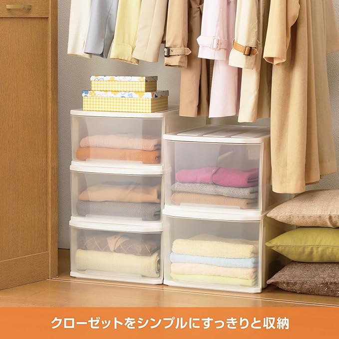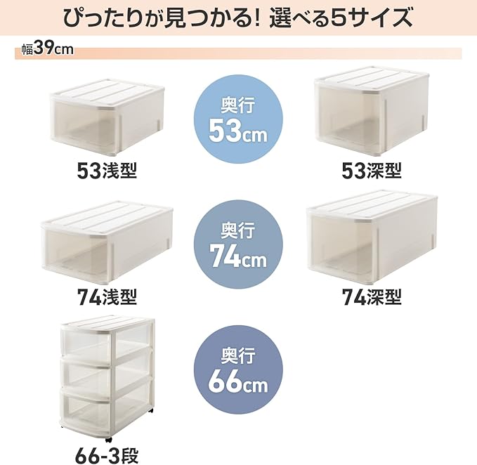 天馬 前面から中身が見えやすいクローゼット収納ケース フェミーネケース 53浅型 引き出し 前に倒れるのを防止する機能付き衣装ケース 収納ボックス 【幅39 奥行53 高さ23cm】