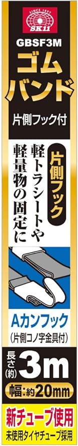 SK11(エスケー11) ゴムバンド 片側フック付 3m 20mm GBSF3M