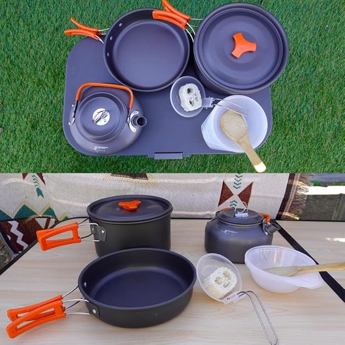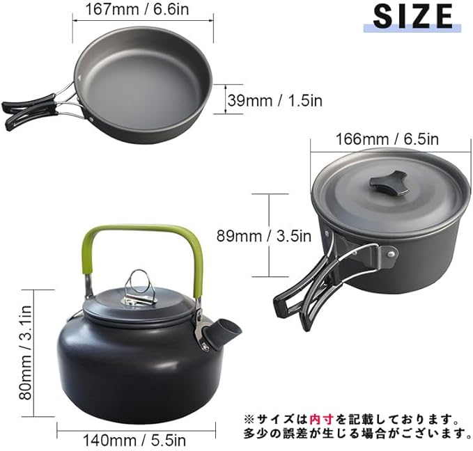 クッカーセット キャンプクッカー ケトル キャンプ鍋 クッキングセット アウトドア 調理器具 鍋セット ソロ 2人 3人 キャンプ用品 やかん アルミ (グリーン)