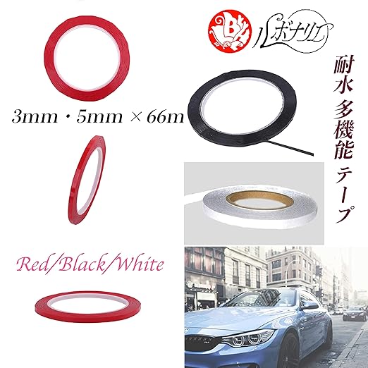 ルボナリエ 耐水 多機能 テープ ラインテープ レッド 66m x 5mm カッティングシート 防水 シール 車 バイク 66m (レッド 5mm)