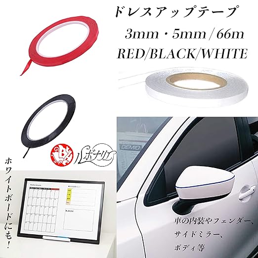 バイクや車をかっこよく彩る!ドレスアップテープ(赤)5mmです。