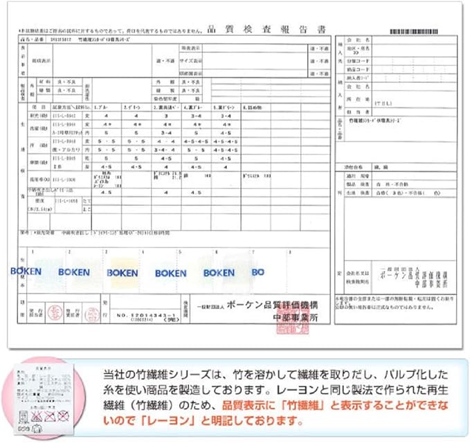吸放湿性試験の結果、綿の約2倍の吸収力があり放湿性にも優れているので乾きが早いです。 竹の成分が配合された特殊繊維は熱移動量が多く触れたときにひんやり感じる清涼感があります。汗をかいてもベタつきにくく蒸れが少ないのでサラッとさわやかな肌触りです 。