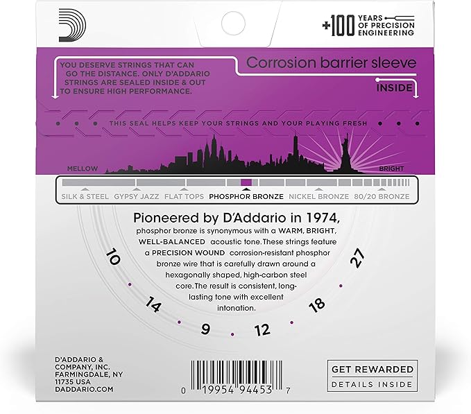 D'Addario ダダリオ アコースティックギター弦 フォスファーブロンズ High-Strung/Nashville Tuning .010-.027 EJ38H 【国内正規品】