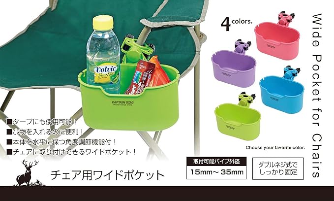 キャプテンスタッグ(CAPTAIN STAG) キャンプ バーベキュー 椅子用トレー ドリンクホルダー チェア用 ワイドポケット