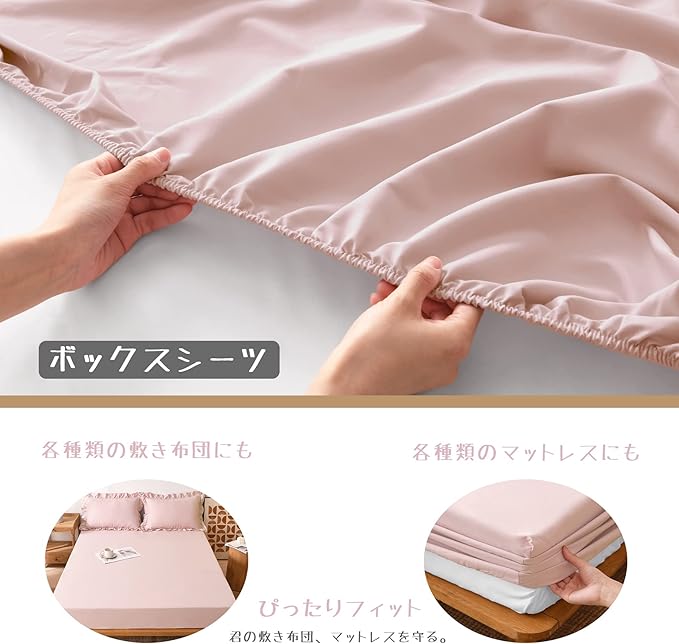 AYO ボックスシーツ マットレスカバー 洋式・和式兼用 ベッドシーツ シーツ ベッドカバー 柔らかな触感 抗菌防臭 吸汗 速乾 マチ部分約30cm 着脱簡単 通気性 丸洗い可能(ピンク, シングル・100X200cm)