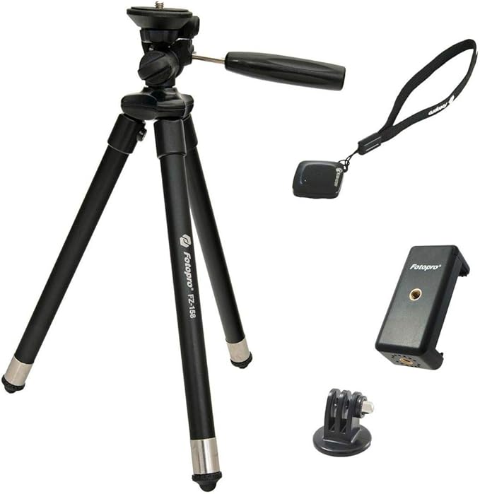 Fotopro スマホ 三脚 100cm 8段階 調節 小型 収納袋 スマホ用 スマホホルダー アダプター iPhone Android スマートフォン gopro アクションカメラ ビデオカメラ カメラ デジカメ 対応 アルミ製 FZ-158+ ブラック