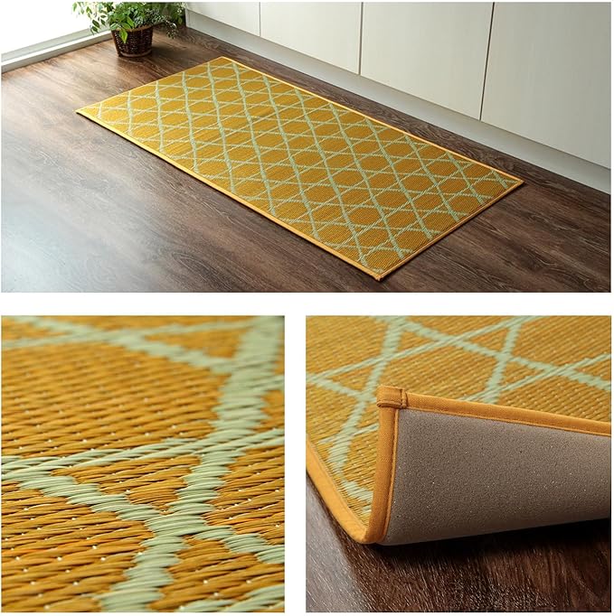 イケヒコ い草 マット キッチンマット 籠目 約60 150cm イエロー 国産 滑りにくい加工 シンプル 和モダン #8243620