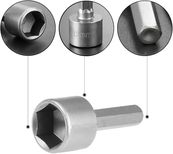 使いやすい:かみ合いが高く、ジの損傷を減らし。エアドライバーまたは電動ドリルに取り付けて、各サイズ六角ボルト・ナット・ネジの着脱作業を行います。1/4 "シャンクは、ほとんどの動力付きコード付きドリルまたはコードレスドリルに適合し、強力な内側六角形スリーブです。