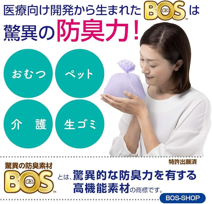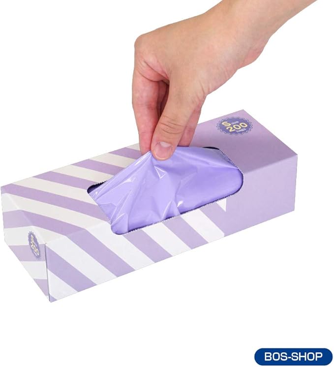 臭わない袋 BOS ボス ストライプ/ラベンダー Sサイズ 200枚入 防臭袋 ゴミ袋 日本製 おむつ オムツ ペット 赤ちゃん 防災 生ゴミ などの処理に