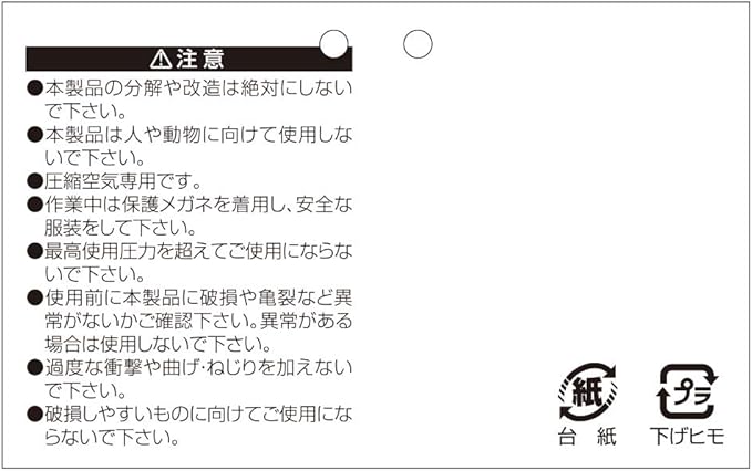 空気使用量:220L/min、最高使用圧力:0.7MPa