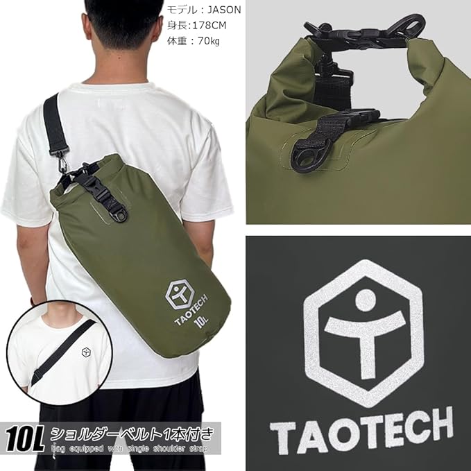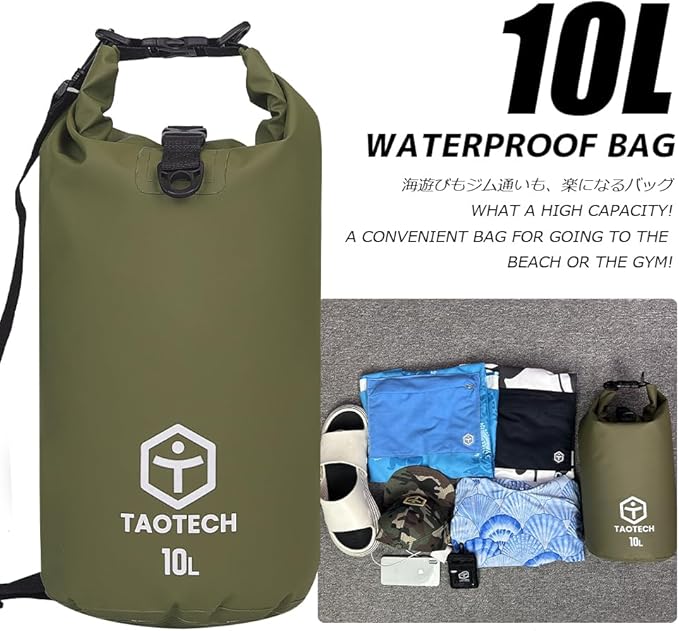 TaoTech 筒型 防水バッグ ドライバッグ 防水 ドラム型 スポーツバッグ アウトドア 海 プール 川遊び 釣り スノーボード 男女兼用(ブラック, 10L)