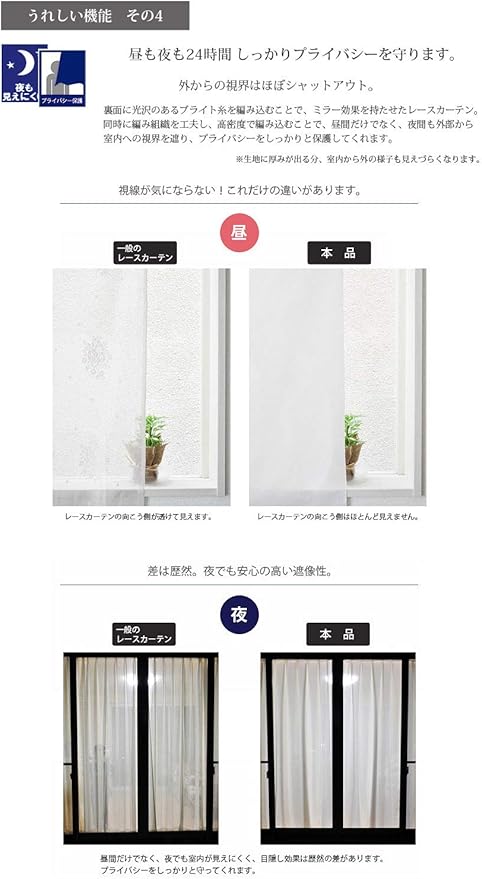 UVカット率90%以上、高い断熱性能、保温効果による節電省エネ、さらには高い遮像性によるプライバシー保護、まさかの時も安心の防炎加工と今求められている機能をフル装備したハイスペックミラーレースカーテン。 ベーシックなデザインで、どんなインテリアにも相性がよく、オールシーズンでご使用できます。 また、洗濯機で洗濯も可能でお手入れも簡単。節電対策にも大活躍してくれる高機能レースカーテンです。 生地から縫製まですべて日本製の高品質・高機能のサラクール ウェーブロン防炎ミラーレースカーテンですが、独自のメーカー直結ルートで高いコストパフォーマンスを実現★ 自信をもってオススメできる一押しレースカーテンです。 ※ご注文をいただいてから生産しますので、折しわも少なくすぐに使用できます。お届けまで少々お時間をいただきますが何卒ご了承ください。