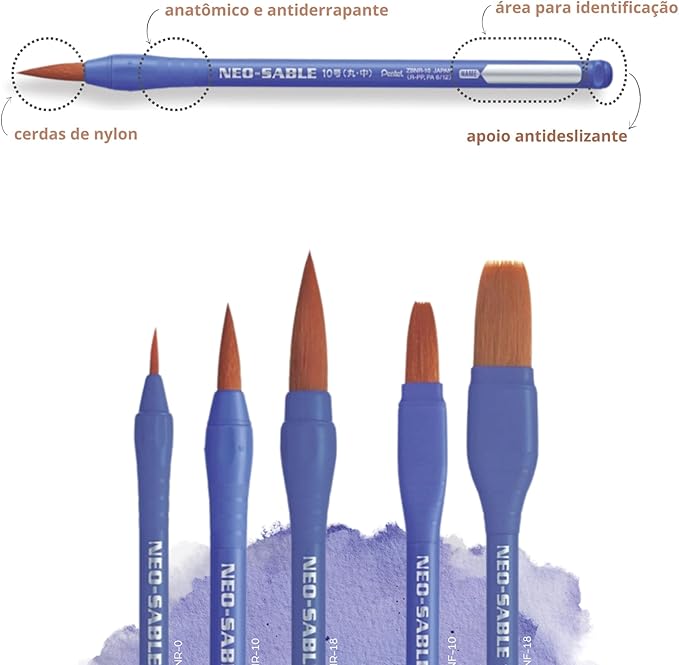 様々な種類のナイロン毛をブレンドし均一に配合しているので、穂先の水ふくみが良く、広い面もムラなく一度に塗る事ができるため、描画がスムーズです。