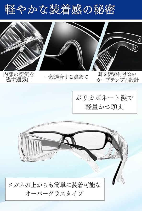 [I'm so happy] ゴーグル 透明 作業用 保護メガネ 眼鏡の上から オーバーグラス 曇り止め 防水 | ryouhinshop