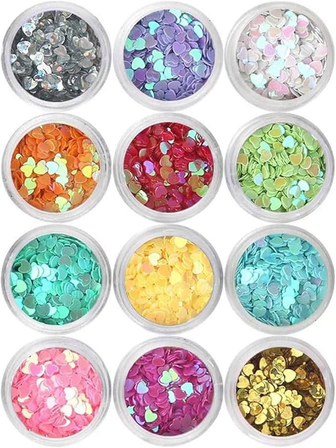 12 ボックス ネイル スパンコール ソリッド ハート 型 マルチカラー シャイニング グリッター ハート型