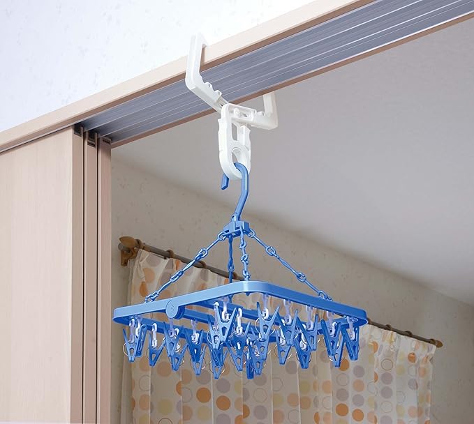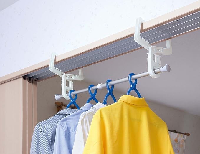 ●雨の日や外出時など洗濯物を室内に干したいとき、ドア枠やふすま、障子などの鴨居に取り付ければ洗濯物を簡単に干すことができます。