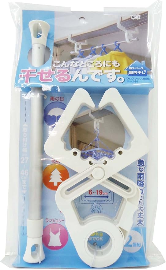 クロスフック使用範囲(鴨居サイズ):幅6~19cm、高さ2~5.5cm・ポール有効幅:27~46cm