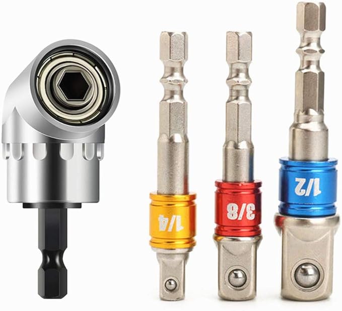 ソケットアダプター 差込角6.35/9.5/12.7mm 105度1/4インチ六角ドリルビット 電動ドライバー ソケットビット 4本セット