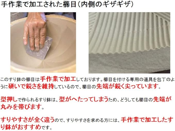 職人が一つ一つ手作業で入れた、すりやすい櫛目(内側のギザギザ)