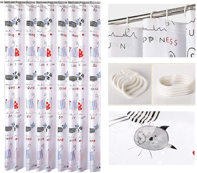 シャワーカーテン ユニットバス 浴室 間仕切り 可愛い猫ちゃん 半透明 防水 防カビ 目隠し用 バスカーテン バス用品 撥水 速乾 お風呂カーテン 保温 リング付き 取り付け簡単 120*180cm