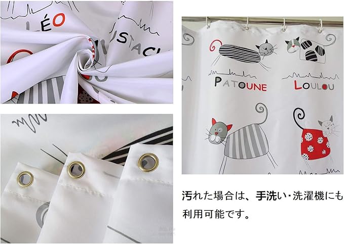 ★【取り付け簡単】:カーテンリング付きなので、カーテンポールに引っかけるだけで、簡単に取り付けます。PEVA製のため、水を弾き、汚れたときにも簡単に拭き取ることができます。汚れた場合は、手洗い・洗濯機にも利用可能です。