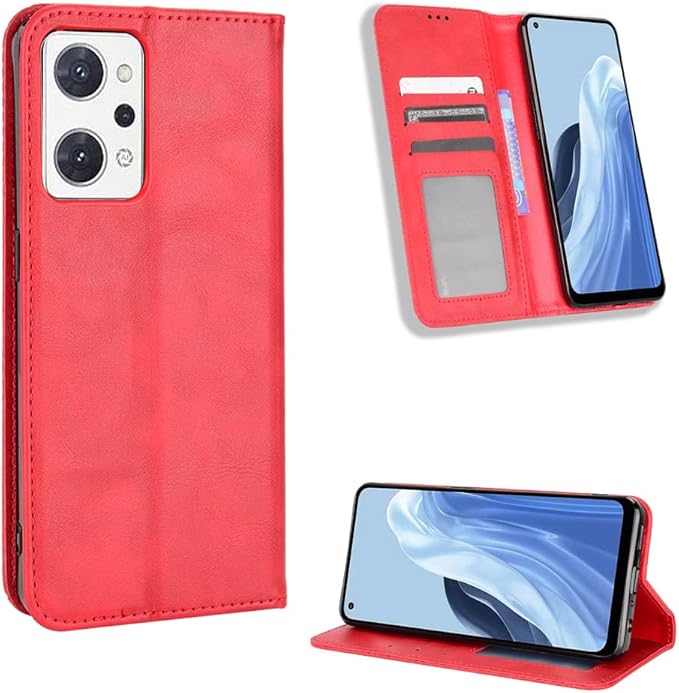 OPPO Reno7 A/OPPO Reno9 A ケース【MARR】 スマホケース 手帳型 シンプル カバー 手帳型ケース Reno7A / Reno9A 高級PU レザー カバー カードポケット 手作り スタンド機能付き 全面保護 マグネット 吸着 (レッド)