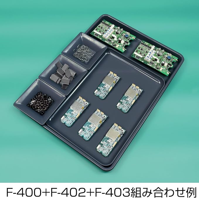 ・用途に応じて組み合わせて使えるノンカーボンの静電気対策トレー。数種類を組み合わせた使用も可能です。