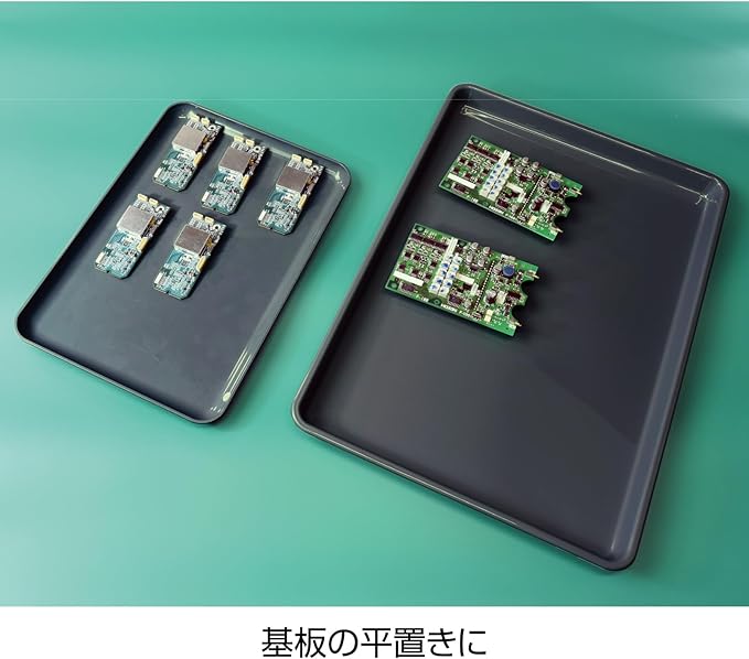 電子部品の保管や分類、基板の平置き、作業場内の移動など、作業内容に合わせて活用できます。