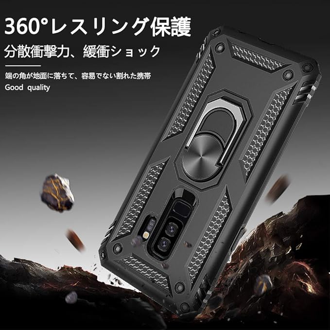Samsung Galaxy S9+ ケース Samsung Galaxy S9 Plusケース リング 対応 落下衝撃吸収 TPU PC 米軍MIL規格 二重構造 リング付き tpu シリコン 薄型 スマホケース 耐衝撃 黄変防止 スタンド 機能付き 滑り防止 シェルカバー 人気 携帯カバー 黒 ZW20-69