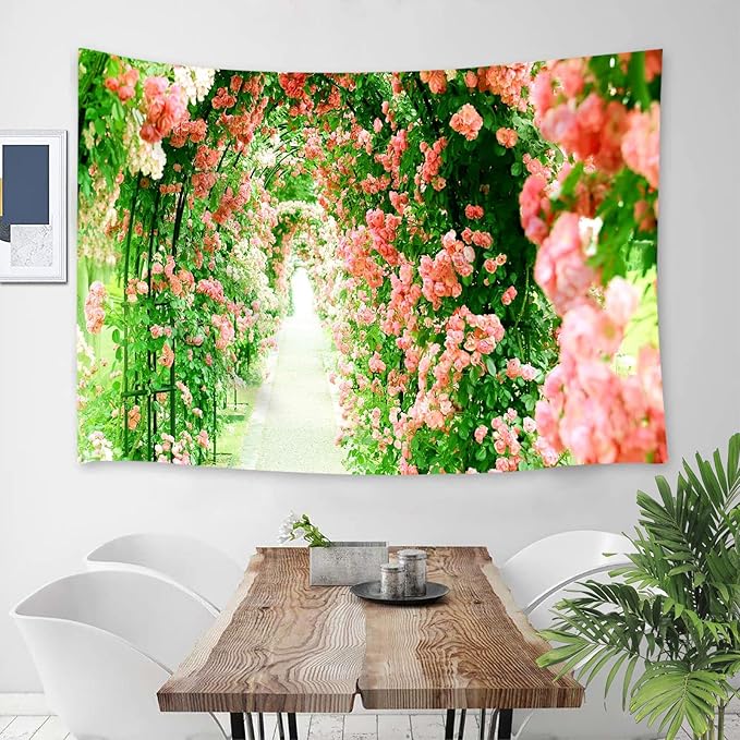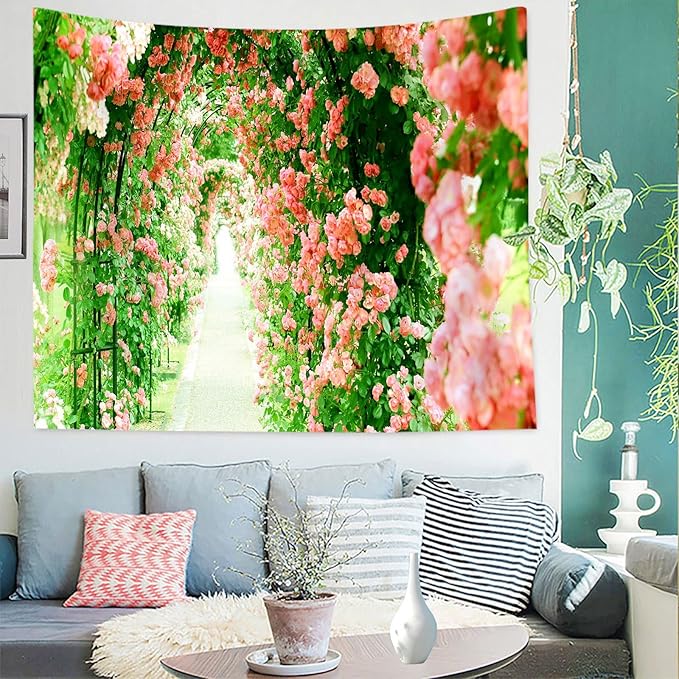 夏のバラの花のアーチタペストリー 大判壁掛背景壁芸術タペストリーは寝室の居間の寮のマンションの 150cm x 100cm