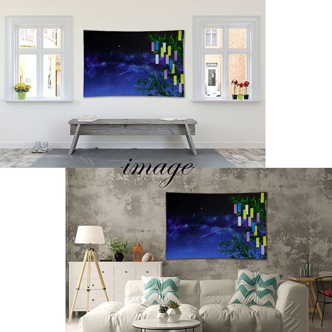 ND タペストリー 七夕 天の川 短冊 笹 流れ星 織姫 彦星 星空 願い事 おしゃれ 風景 夜 和風 和モダン 癒し 部屋 飾り付け オンライン飲み会 背景布 インスタ映え グッズ 布 テレワーク zoom 背景 映え コンパクト 小さめ 小さい ミニ (デザイン3)