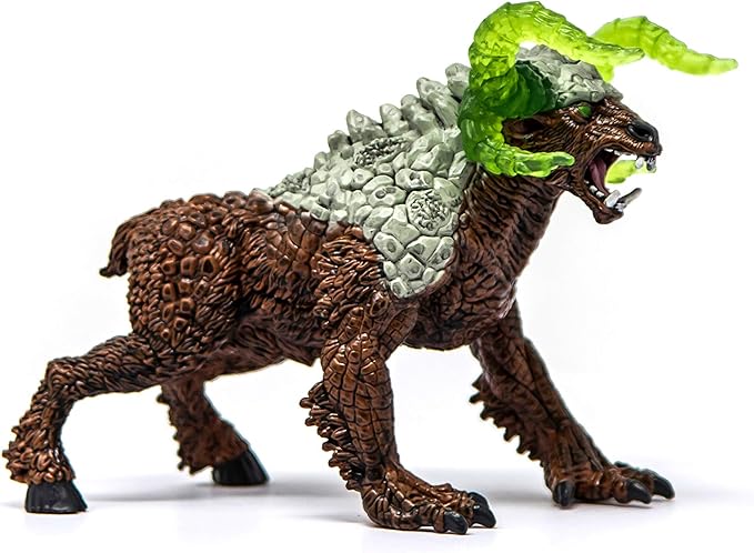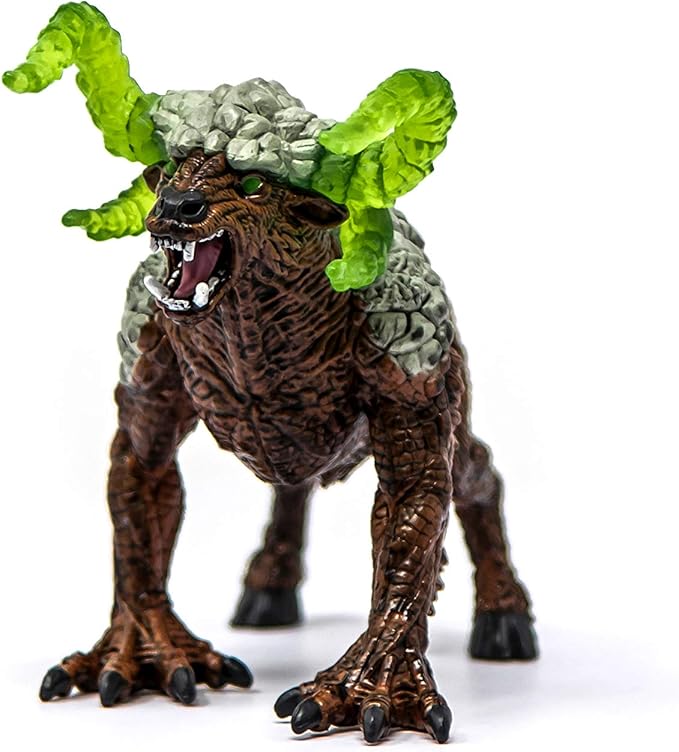 【シュライヒについて】 2020年に創立85周年を迎えたシュライヒ社は、ドイツ最大手のおもちゃ会社の一つで世界屈指のフィギュアメーカーです。シュライヒフィギュアは世界60カ国以上で販売されており、リアルに再現された精巧な製品は、世界中の子どもたちに愛されています。 【商品について】 体中が「石の世界」と同期しているかのようなロッククビースト。険しい場所もものともせず、強靭な後脚を使って光りの速さで駆け抜ける。そしてカミソリのように鋭い爪で敵を恐怖に陥れる。首の周りのよろいで敵から身を守り、マジカルクリスタルの4本の角で敵を石柱に変えてしまうのだ! ロックビーストは「石の世界」の険しい山に棲んでいるタフなやつ…‥。とても近寄れるような場所じゃないのに、やつの強靭な前脚とカミソリのような爪で、いとも簡単に急な岩山を登ってしまう。グリーンの瞳はわずかな動きも見逃さない。侵入者は決してビーストの目を逃れることができないのだ。敵を見つけるとすぐに追いかける。直接対決では誰にも負けない。首は頑丈なよろいで覆われていて、いかなる攻撃からも身を守ることができる。マジカルクリスタルの4本の角で敵にとどめを刺す。グリーンの角に触れるとたちまち石になってしまう。