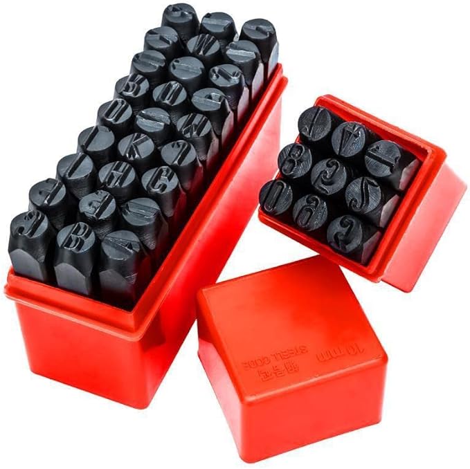 アルファベット26本+1本、数字9本で合計36本のお得な打刻印セットです。